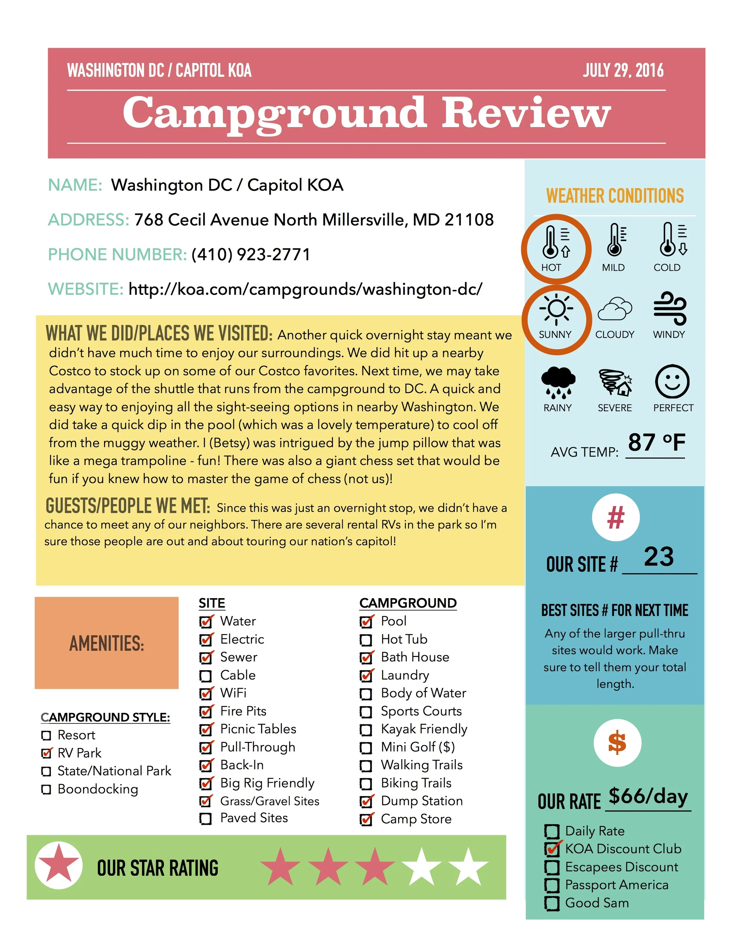 Our trip to the Washington DC / Capitol KOA was another overnight stop on our way to our family camping trip in Delaware. We decided on this location to get us fairly close to our destination of The Resort at Massey’s Landing tomorrow. We arrived shortly after lunch time and were able to check-in right away. At first glance, we thought we may have trouble getting into our site, but it didn’t take much work at all once we found a place to cut through with the truck. Most of the sites are pull-thru with some longer in length than others. Make sure to let the front desk know the total length of your rig when you call. There are different levels of hookups - some with just water/electric, some with full hookups. We were able to get a site with 30 amp service and water which was plenty for just the evening. We enjoyed a quick swim at the pool which was a perfect temperature for a dip to cool off. There is also a playground, basketball court, jumbo outdoor chess set, and a really cool jumping pillow. I would certainly recommend the campground if you wanted to be in the area to visit either Baltimore or Washington DC. They do run a shuttle to DC (I believe it is $13.50/person - definitely check prior to arrival for details on the shuttle).